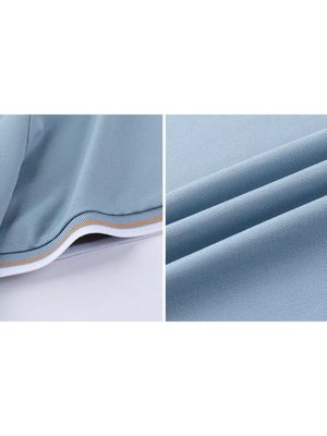 • Sleeves: Short sleeves with ribbed cuffs and contrast piping